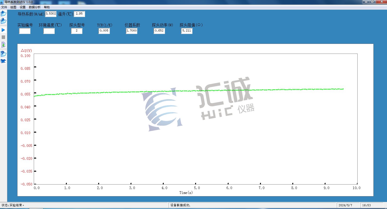 利用匯誠儀器HCDR-S導(dǎo)熱儀對陶瓷材料導(dǎo)熱系數(shù)的實測圖譜如下,可以看出測得的導(dǎo)熱系數(shù)為3.5302W/mK。