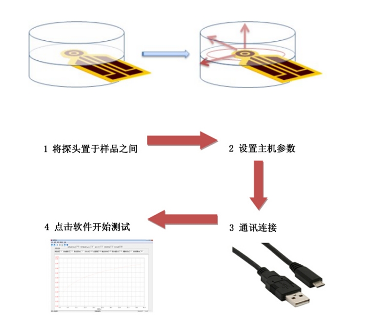 在測量陶瓷材料導(dǎo)熱系數(shù)實驗時,首先需要準(zhǔn)備樣品,每份樣品取兩份,將探頭置于樣品之間,以確保其與樣品接觸良好。設(shè)置主機參數(shù)升溫速率為10℃/min,溫度范圍為20℃~130℃。隨后,啟動儀器,通過探頭施加恒定的電流,從而產(chǎn)生一個已知的熱流量。