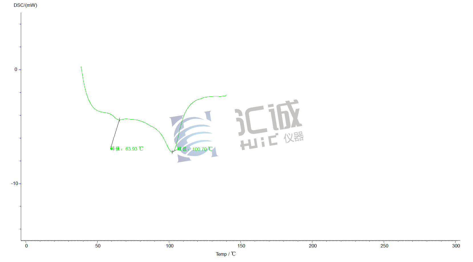 從DSC的測(cè)試結(jié)果顯示,下膜樣品的兩個(gè)峰值溫度分別是63.93℃和100.7℃。