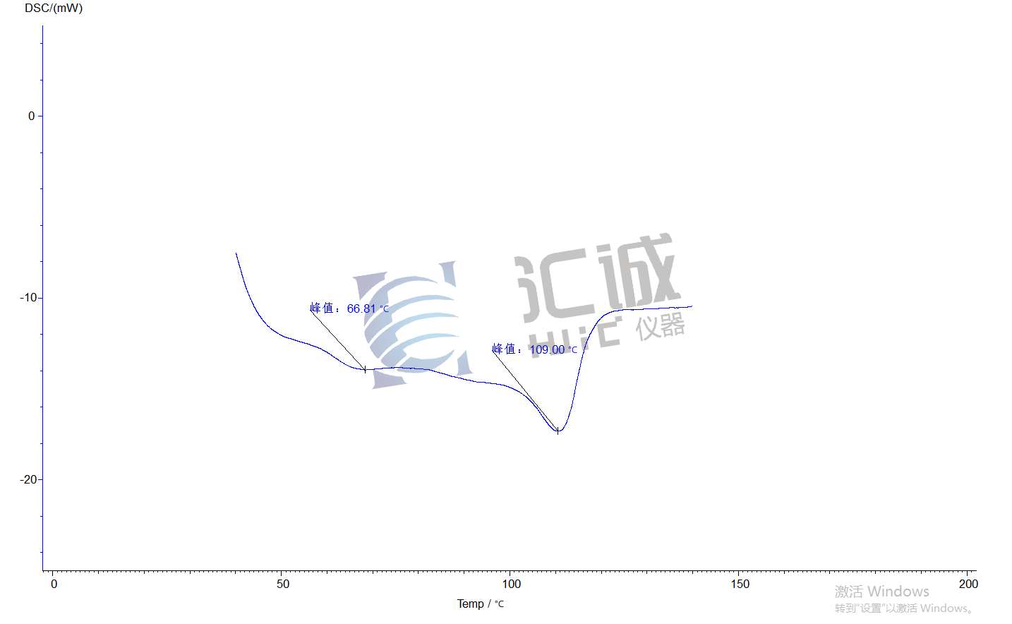 從DSC的測(cè)試結(jié)果顯示,上膜樣品的兩個(gè)峰值溫度分別是66.81℃和109℃。